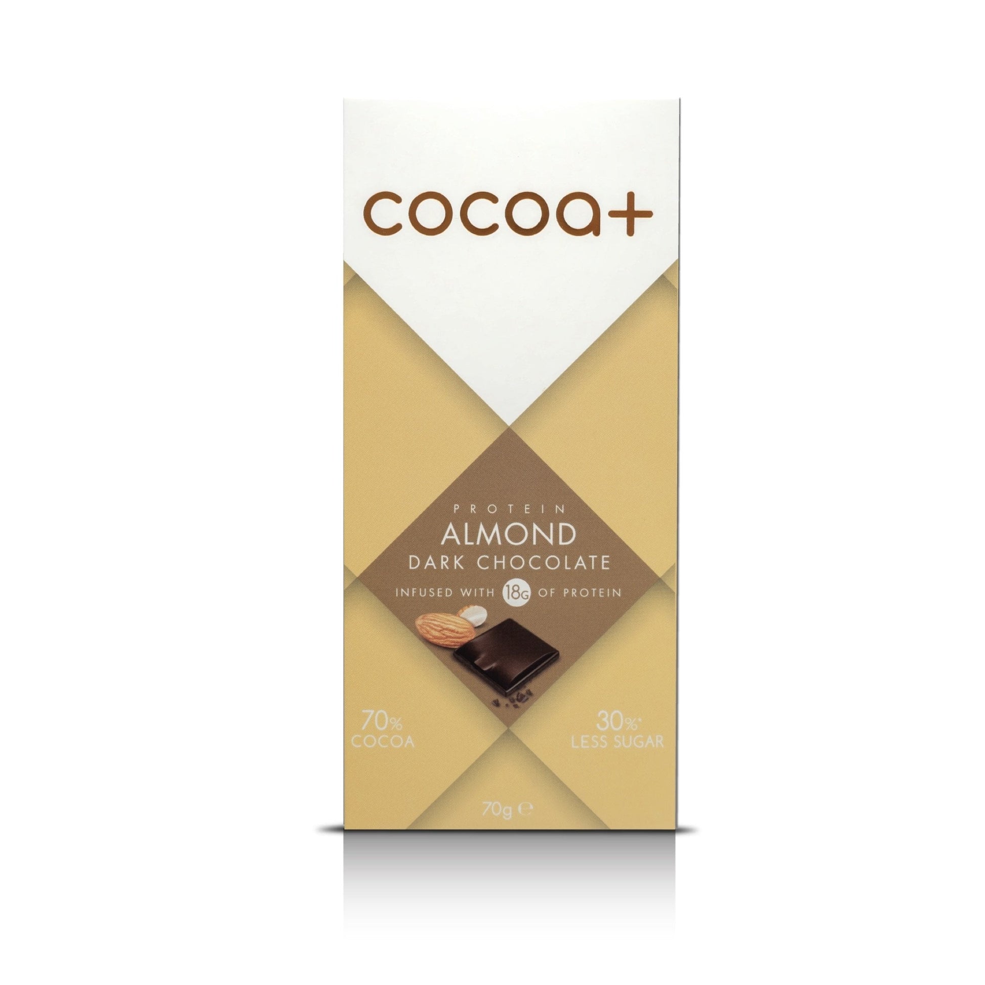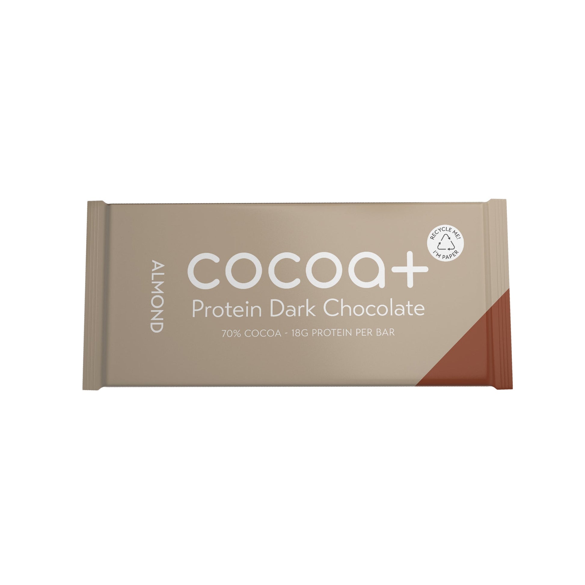 Dark Chocolate with added Whey Protein Isolate and Roasted Almond.