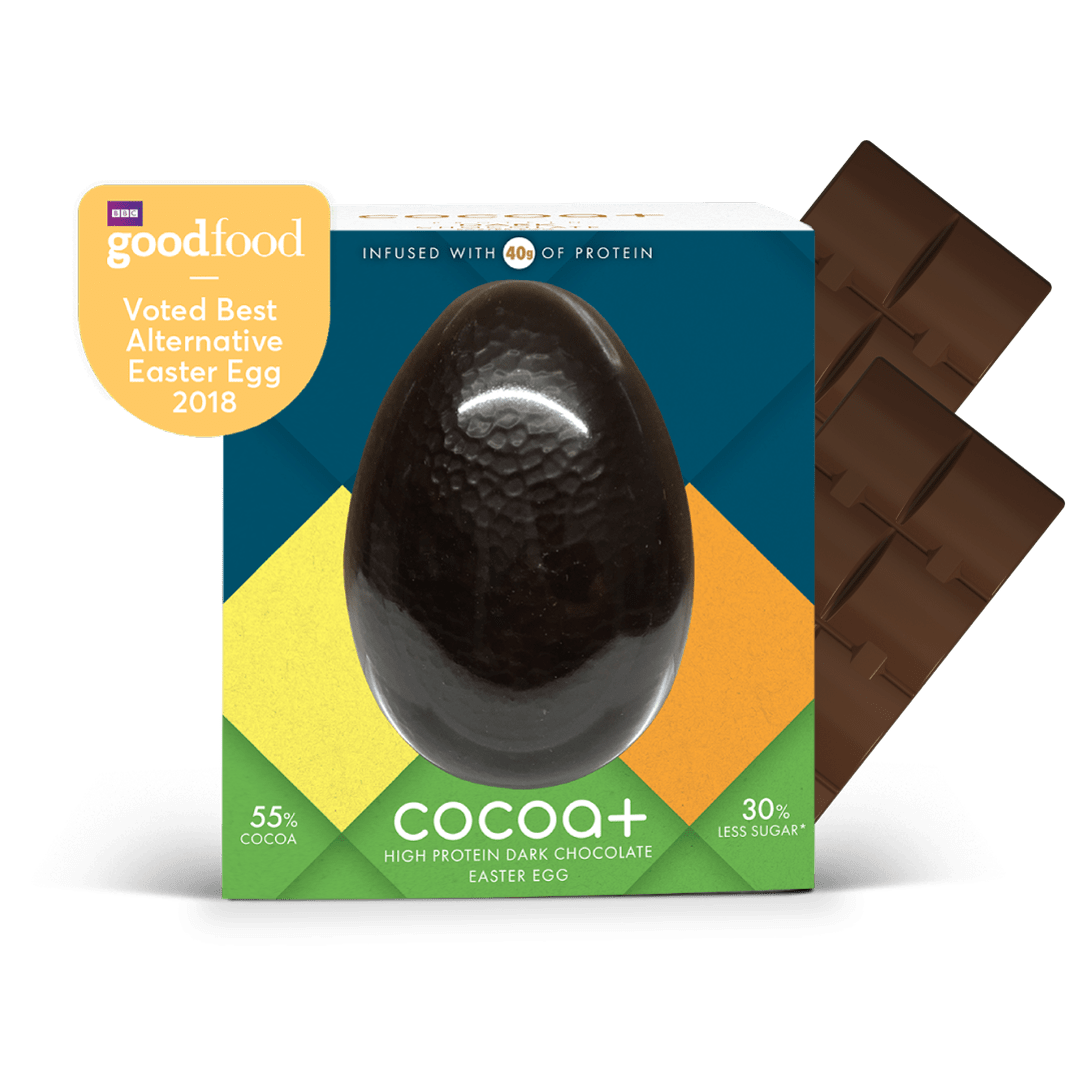 30% less sugar and 4 x more protein than your regular supermarket dark chocolate Easter egg.