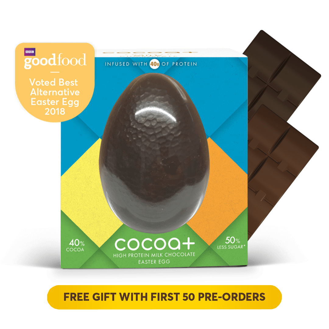 50% less sugar and 4 x more protein than your regular supermarket milk chocolate Easter egg.